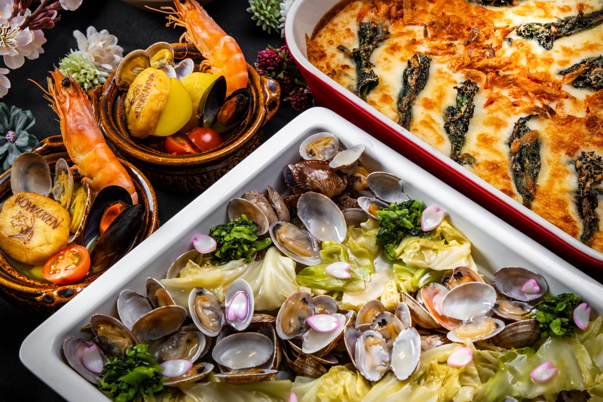 春の訪れを祝う彩り豊かなメニューをそろえ、旬の食材をふんだんに使用したビュッフェをご用意しました。新緑と花々に包まれる季節にぴったりの、やさしく華やかな味わいをお楽しみください。