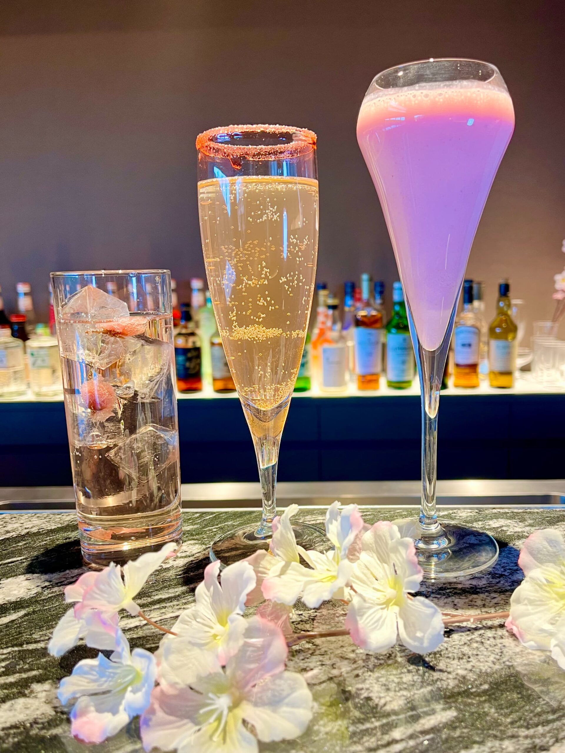 スパークリングワインとサクラリキュールが織りなす華やかなハーモニー。祝杯にふさわしい、春らしい優雅な味わい。