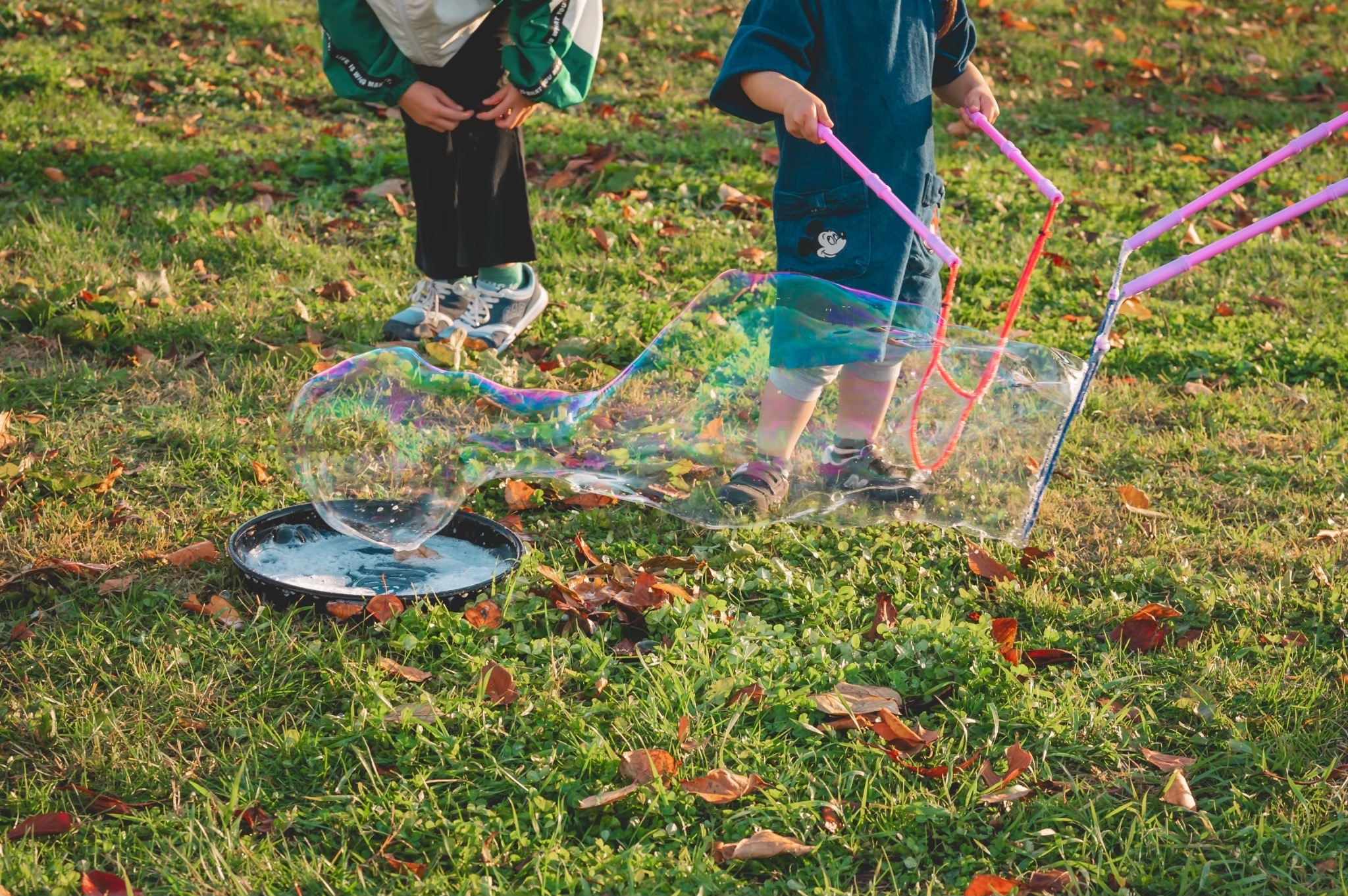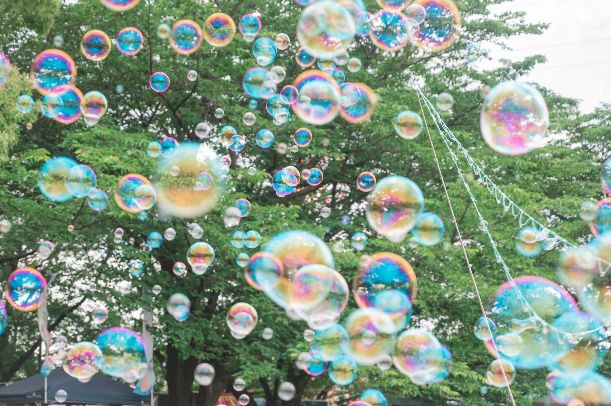 青空に舞う昼の笑顔、ライトに輝く夜のフォトジェニック。みんなで楽しむシャボン玉イベント!