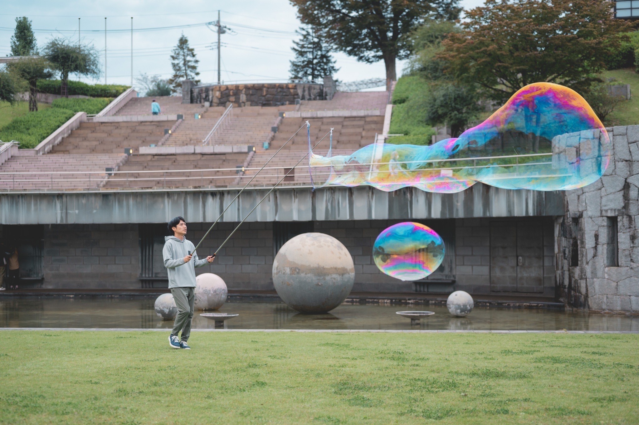 神奈川で活動するシャボン玉師「みんみぽ」によるパフォーマンスと体験で、家族の思い出づくりやカップルの記念撮影にぴったりの時間をお届けします。昼は青空と、夜はライトアップされた泡がフォトジェニックに彩ります。