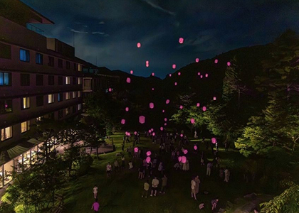箱根ホテル小涌園では、フロントロビーでの日没後の照明ライトアップを開催期間中はピンクに変更いたします。さらに、庭園で毎夜開催している「ランタンナイト」では、オレンジ色からピンク色のLEDライトに変更し、箱根の夜空に空高く舞うピンク色のランタンが幻想的な空間を演出いたします。また、Bar1959ではオリジナルノンアルコールカクテルをご用意。